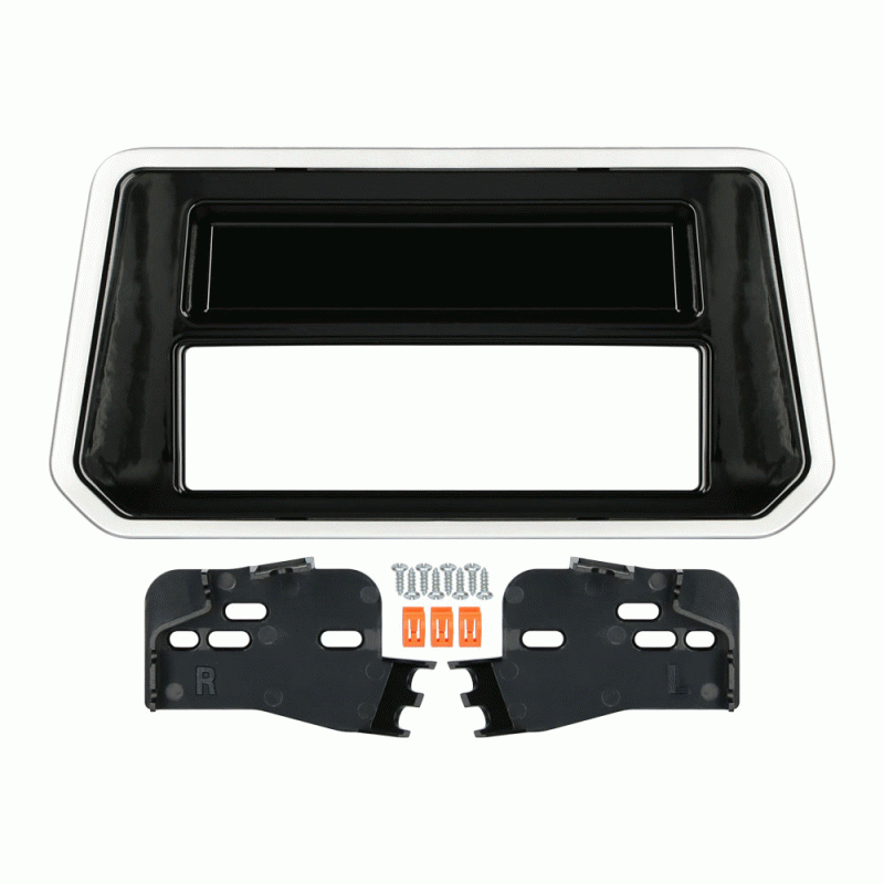 This stereo installation kit is engineered to help you install an aftermarket 4" tall (Double-DIN) radio with an "L" shaped chassis design (Alpine Halo) or a modular radio (Pioneer Modular Solutions) into the original vehicle dashboard. This dash kit helps make radio replacement simple and is painted gloss black with a bright silver trim panel and textured radio housing to match the original look and feel of the vehicle's dashboard. Installing an aftermarket radio can upgrade the sound quality and provide additional features the original factory radio couldn't offer but requires this dash kit to make it fit