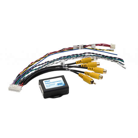 The VS41 is a universal 4-camera switcher that features four camera inputs (front, left, right side, and rear) and one video output to connect to a factory or aftermarket radio with a video display. The inputs are triggered by driver behavior, with the rear back-up inputs automatically activated when the vehicle is shifted into reverse and side inputs prompted by the turn signals. The VS41 is a perfect complement to the versatile universal mount back-up and side blind spot elimination cameras from EchoMaster.